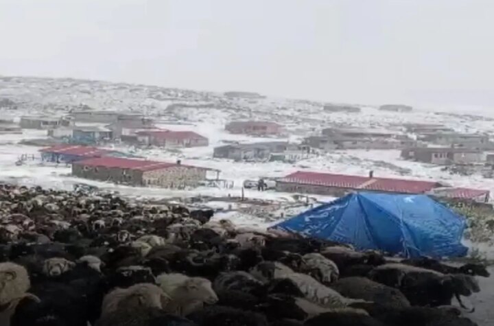 Erzurum'un Olur ilçesine bağlı Nügürcük Köyü Yaylası, tesirli olan kar yağışı ile birlikte beyaza...