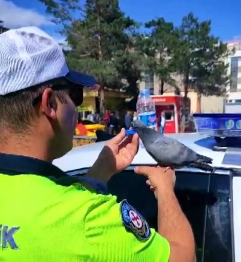 Erzincan merkezde hastanenin bulunduğu cadde üzerinde yanılgılı park ihbarına giden trafik polisi takım otosunu park ettikten sonra enteresan bir anla karşılaştı. Park halindeki arabanın üzerine susuzluktan bitkin düşen bir güvercin kondu. Güvercine kayıtsız kalamayan trafik polisi pet şişedeki suyunu çıkararak kuşa su içirdi. Yürekleri ısıtan bu anlar bir vatandaş tarafından cep telefonuyla görüntülendi.