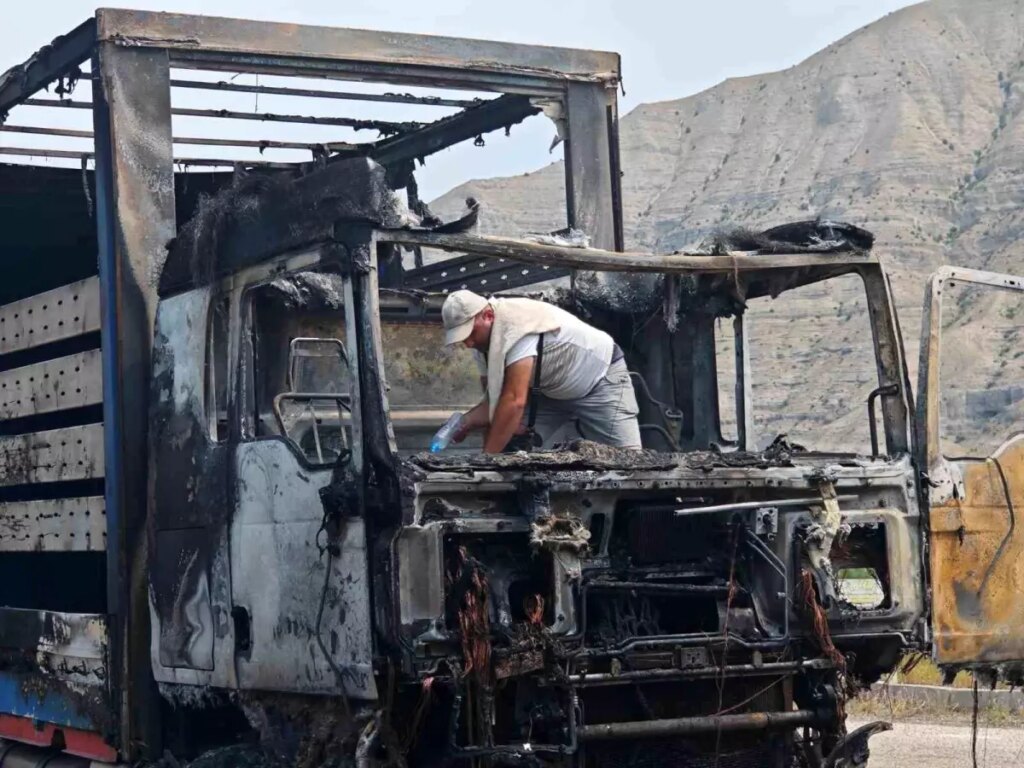 Erzurum’un Uzundere ilçesinden geçen Erzurum-Artvin karayolunda Gürcü plakalı bir tır, şimdi belirlenemeyen bir sebeple ansızın yanmaya başladı.