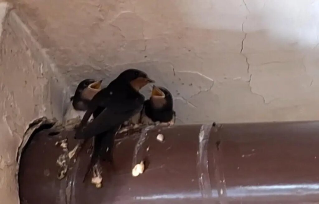 Erzincan’da kahvehaneyi yuva yapan 3 yavru ve anne, baba kırlangıç ailesi yürekleri ısıttı.