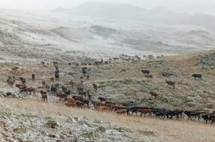 Erzurum'un Oltu ilçesinde yüksek kesitlere yağan kar, sürülerini yaylada otlatan çobanlar için sıkıntı anlar...