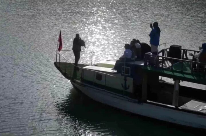Erzurum'un Uzundere ilçesindeki Tortum Gölü, seyahate gelen vatandaşların düzenlediği tekne çeşidinde tulum ve akordiyonla...