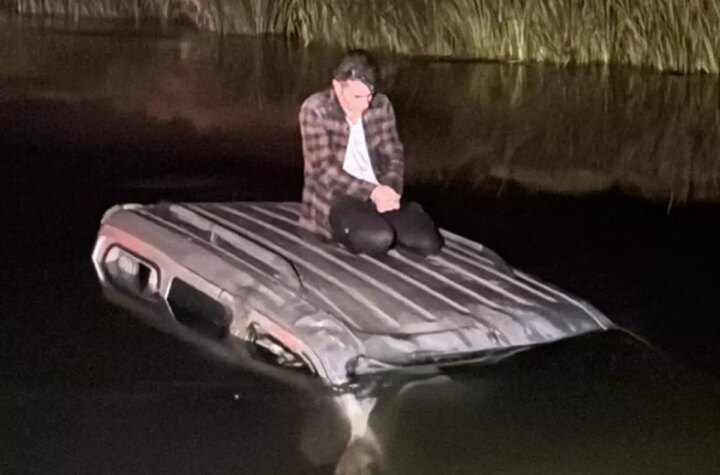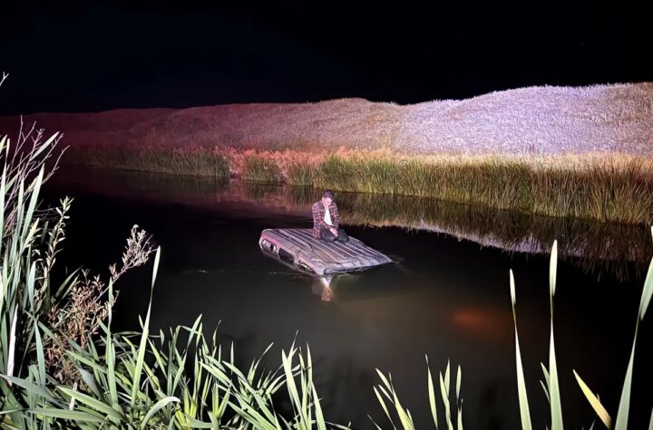 Erzurum'un Aziziye ilçesinde park halindeki cipe çarptıktan sonra Karasu Irmağı'na düşen hafif ticari aracın...
