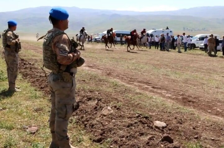 Erzurum'un Çat ilçesinde düzenlenen Klasik At Yarışları Şenliği'nde, jandarma takımları güvenlik önlemleri alarak aktifliğin...