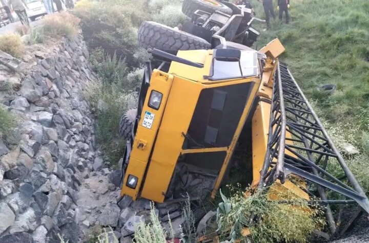 Erzurum'un Yakutiye ilçesinde devrilmekte olan vinçten kurtulmaya çalışan operatör Ömür Fazilet Dadak, aracın altında...