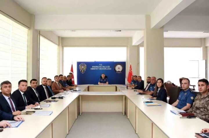 Erzincan Vilayet Emniyet Müdürü Zafer Baybaba, il emniyet müdür yardımcıları ve ünite amirleriyle bir...