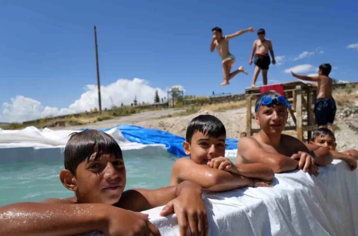 Erzurum'un bir köyünde çocuklar havuz keyfi yaşasın diye kolları sıvayan Berham Karamanlı, onlar için...