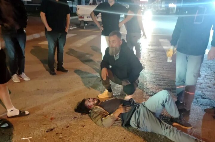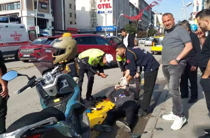 Erzurum'da bir motosiklet şoförü, önündeki taksiye geriden çarparak yola savruldu. Yaralı şoförün ambulans gelene...