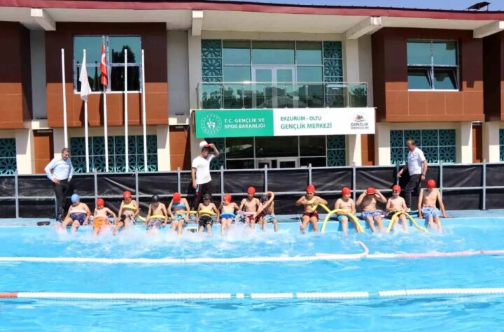 Erzurum'un Oltu ilçesindeki fiyatsız yüzme kursları yaz sıcaklarından bunalan çocuklara hem serinleme hem de...