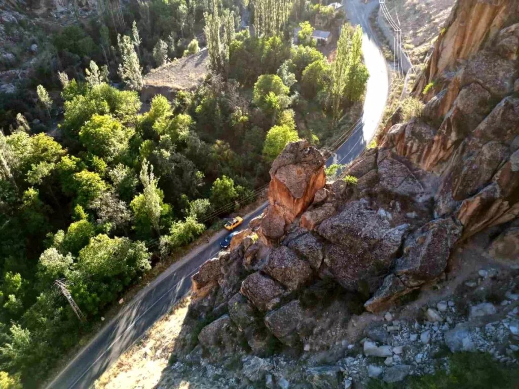 Uzundere’de Dev Kayalar Tehlike Saçıyor