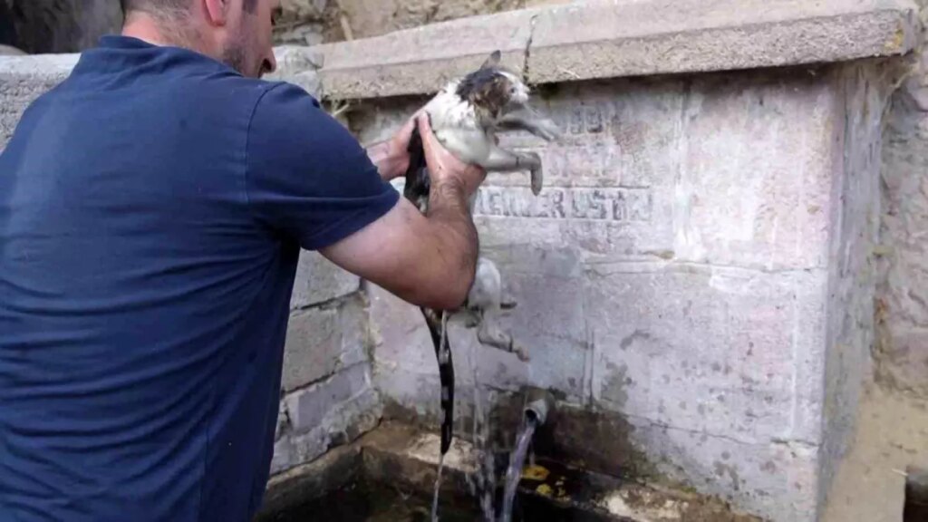 Erzurum’un Yakutiye ilçesine bağlı Kırmızıtaş Mahallesi’nde meydana gelen yangında alevler içinde kalan kediye şefkat eli uzandı.